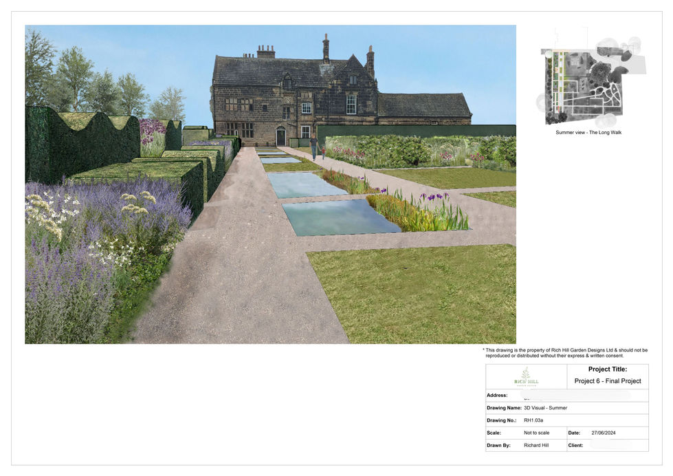 This property has a rich and complex history dating back to the 12th century. Such a depth of history has served to help create a garden design that both speaks of this history, and the aesthetics of the house, as well as providing a beautiful and functional space befitting of modern times. The sandstone of this Elizabethan house has weathered to a beautiful patina over the centuries, becoming pitted and irregular. The layout of the design has borrowed these shapes to become paths, lawns and planting beds. Wavy-topped clipped yew hedges draw you down the garden and these too have been inspired by the eroded face of the sandstone house. Researching the history of the property revealed a fascinating link to the oldest botanical gardens in the world, found at The University of Padua, Italy. The property was lived in ca. 1620 by a physician of the time who carried out further study at The University of Padua. A segmented circular parterre features in the design, inspired by the original 1545 layout at The University of Padua which can still be seen today. The property is used by weekend guests and for a range of events including outdoor opera performances. It also sometimes hosts small weddings and the new garden design makes use of old and wild roses in many shades of pink, paired with herbaceous perennials in white and blue; the perfect marriage.